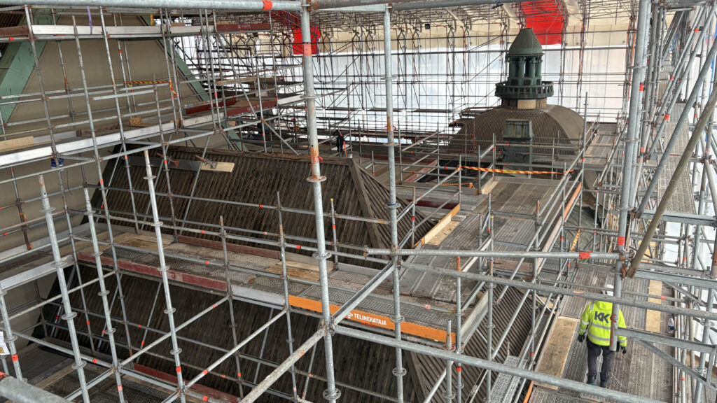 Kansallismuseon peruskorjauksessa korjattiin myös koko vesikatto. Katto on kokonaan liuskekiveä ja kuparia, ja kansallisromanttista jugendia edustava rakennus edellytti monimutkaisia telineratkaisuja.