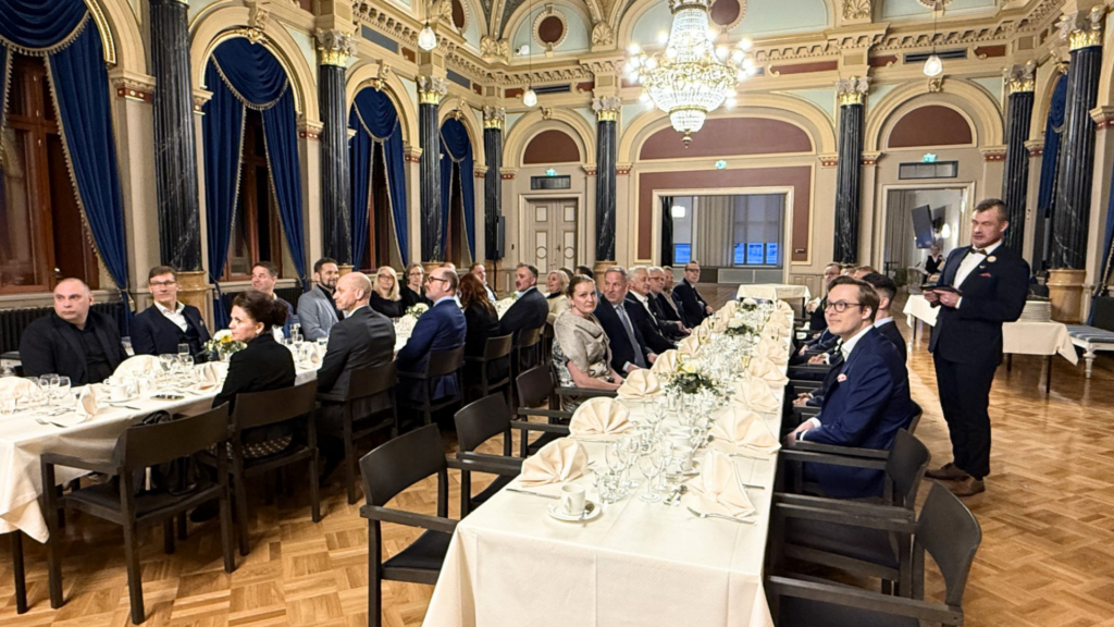 Päivän päätteeksi Oulun kaupunki järjesti illallisen hiljattain peruskorjatulla kaupungintalolla, jonka juhlasali on aiemmin palvellut muun muassa teatterina. Kaupunginhallituksen puheenjohtajan Jarmo Husson mukaan vuonna 1886 valmistuneen uusrenessanssirakennuksen perustukset rakensivat venäläiset, suunnittelusta vastasivat ruotsalaiset ja juhlasalin koristemaalaukset olivat itävaltalaisten käsialaa.